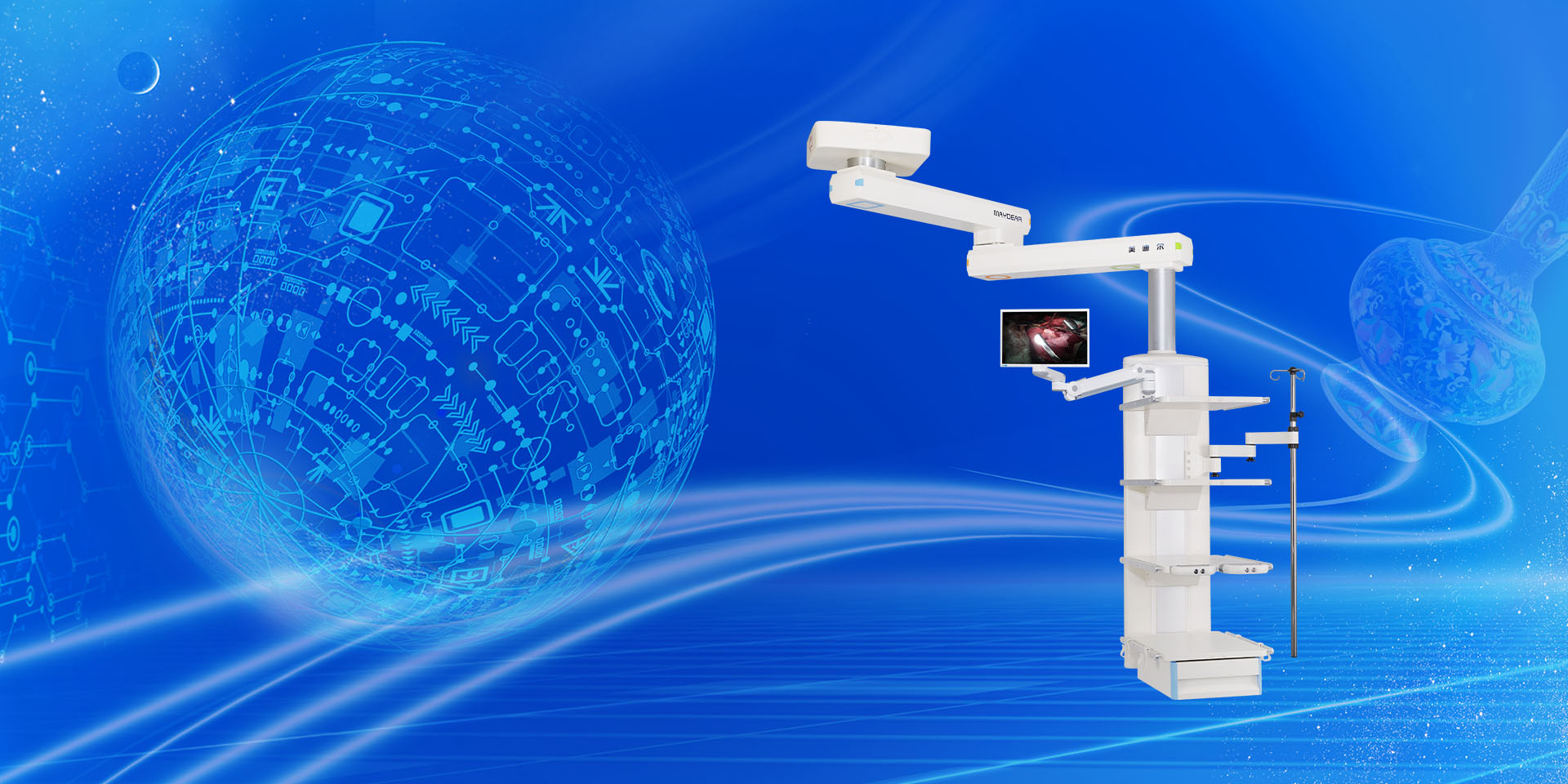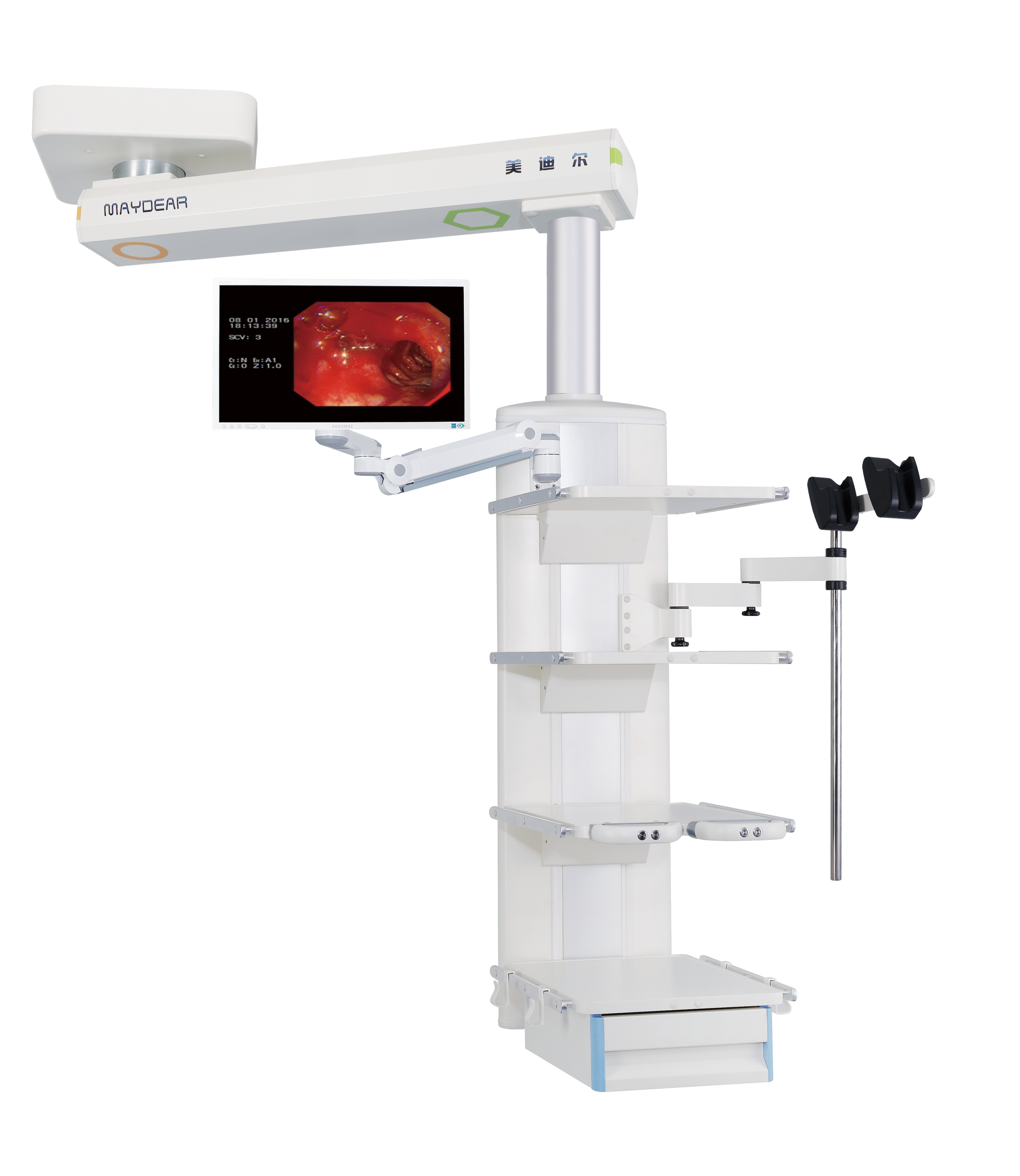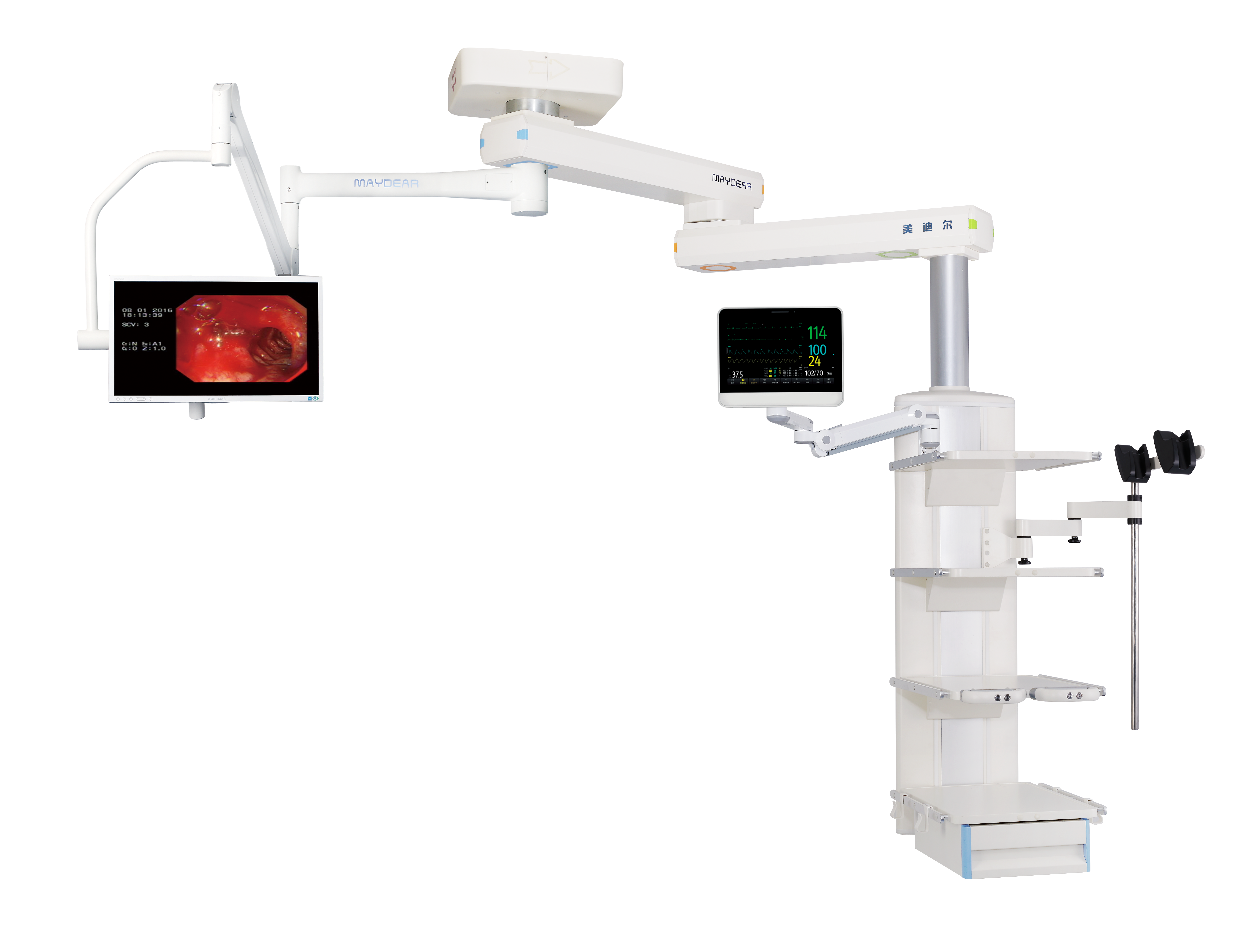 是現(xiàn)代手術(shù)室常用的一種新型實(shí)用的醫(yī)療輔助設(shè)備,其結(jié)構(gòu)緊湊,設(shè)計(jì)合理,既能電動(dòng)升降又能在一定直徑范圍內(nèi)旋轉(zhuǎn)340度,降低時(shí)醫(yī)護(hù)人員抬手可及,升高后則不影響任何工作,并配置氣動(dòng)剎車防飄移,可根據(jù)醫(yī)護(hù)人員要求,輕松移動(dòng)和鎖定塔體位置。必備的醫(yī)用氣體、吸引、強(qiáng)弱電、網(wǎng)絡(luò)輸出終端集中在平臺(tái)功能箱體上,平臺(tái)可承載一定重量的醫(yī)療儀器,是醫(yī)護(hù)人員理想的醫(yī)氣、電源、儀器平臺(tái)工作站